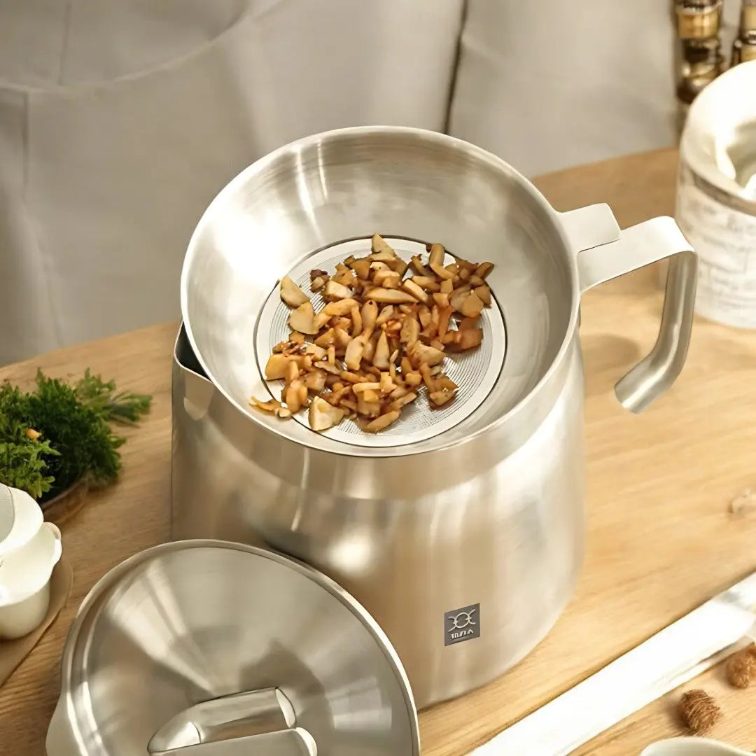 Designed for everyday kitchen use, it supports oil reuse, helps reduce waste, and offers a practical solution for frying, straining, and storing cooking oil.