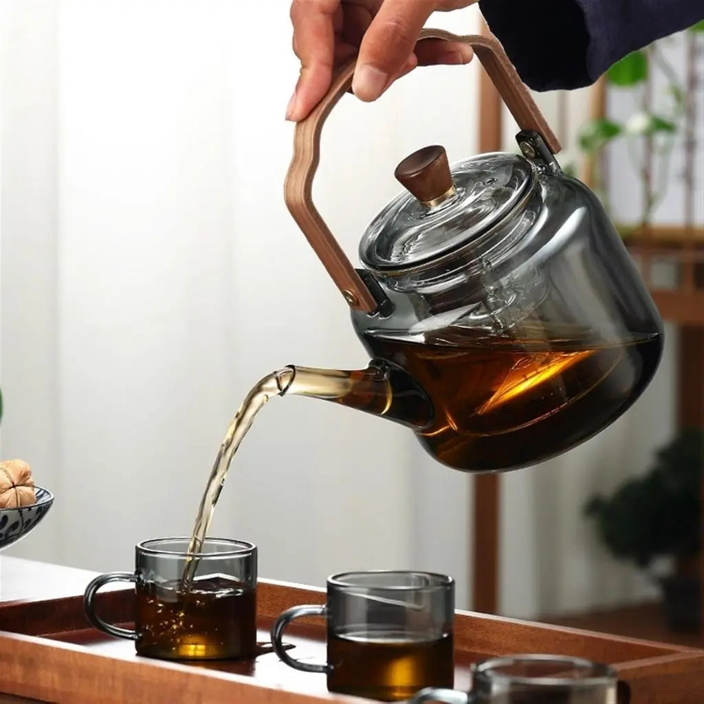 Borosilicate Glass Teapot with Wooden Handle